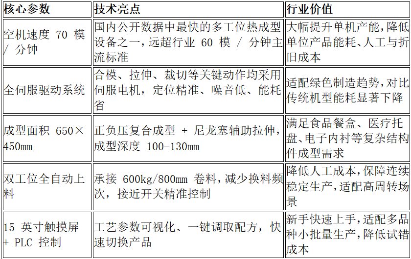 · 核心赛道:专注塑料热成型装备研发、制造与销售,主打高端全自动多工位热成型吸塑机,打破国内高端设备依赖进口的格局。